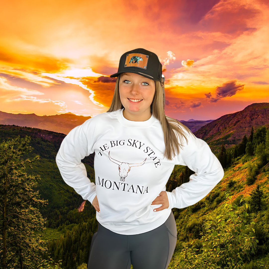 Kamryn Loves Sporting The Big Sky. The Skull Head Is Made With Shiny Copper Vinyl, Kamryn Cuts Out Each Design Individually To Bring You The Best Quality Design.