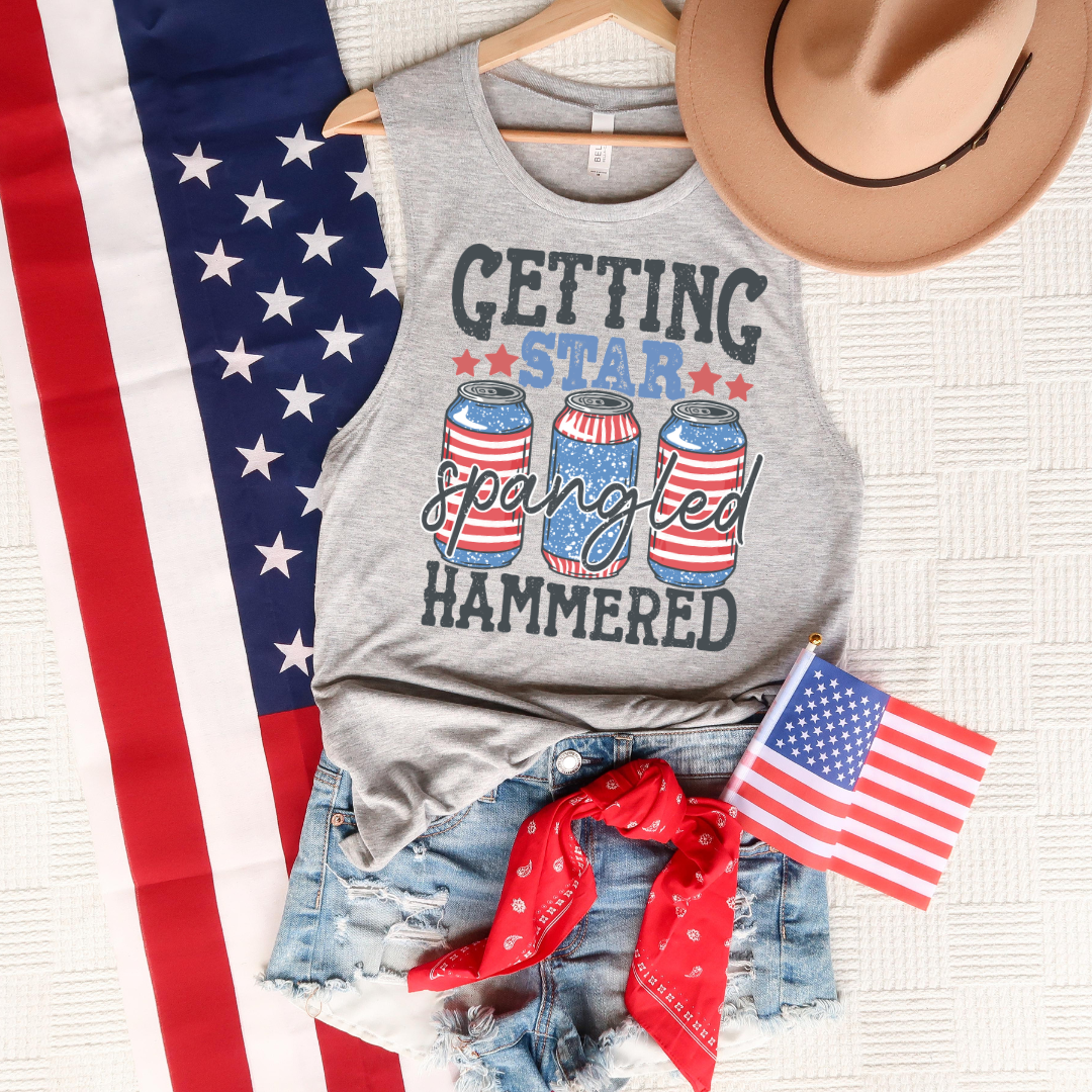 Get ready to turn heads and turn up with our “Getting Star Spangled Hammered” shirt. Whether you're lighting fireworks or just lighting up the grill, this design brings all the patriotic sass for your 4th of July festivities.