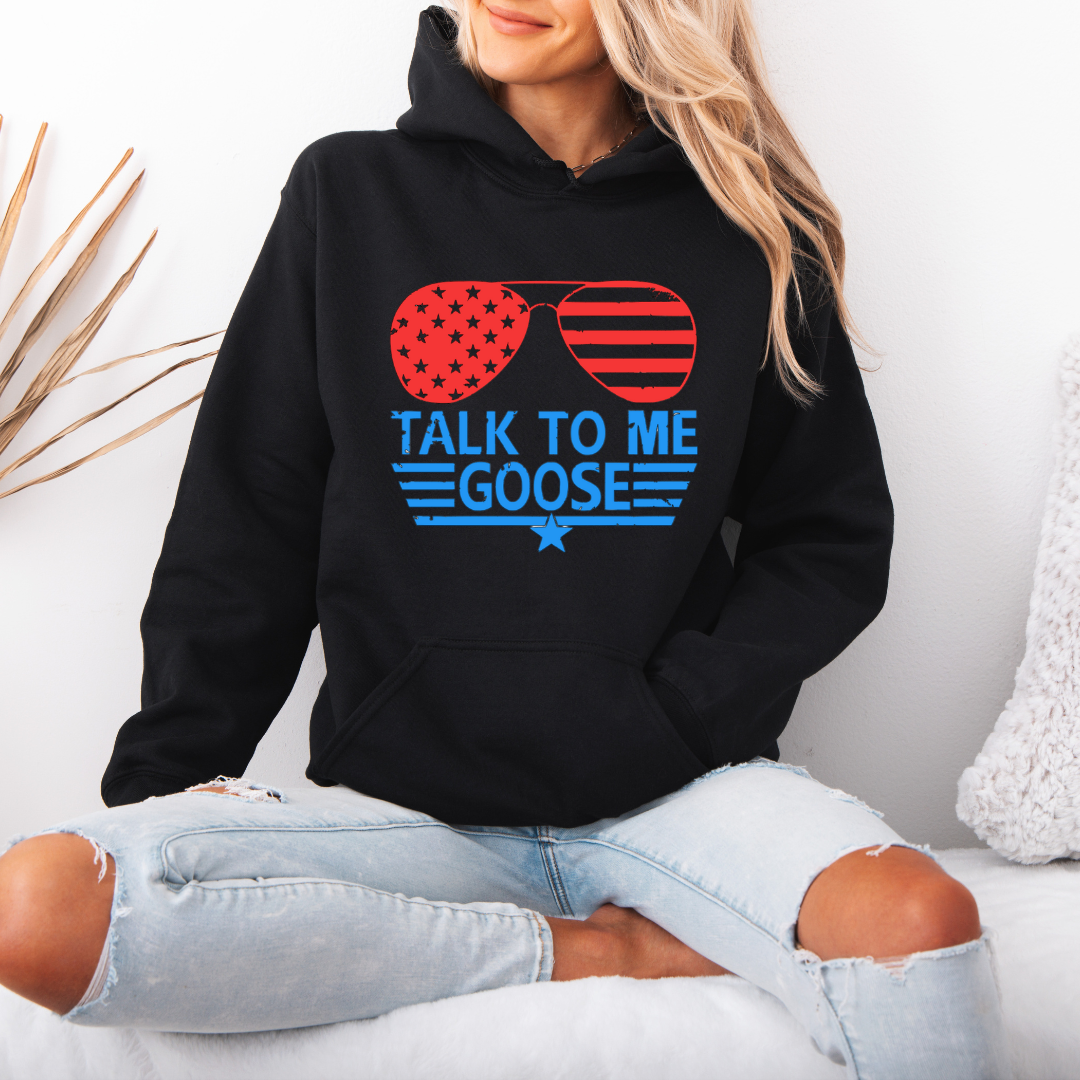 This “Talk to Me Goose” patriotic hoodie is giving total Top Gun meets 4th of July energy, and we’re here for it. With red, white, and blue aviators and that iconic quote, this design is a playful nod to nostalgia and national pride all at once. Perfect for BBQs, fireworks, and feeling the need for speed — it’s available in a t-shirt, tank, crewneck sweatshirt, or hoodie.